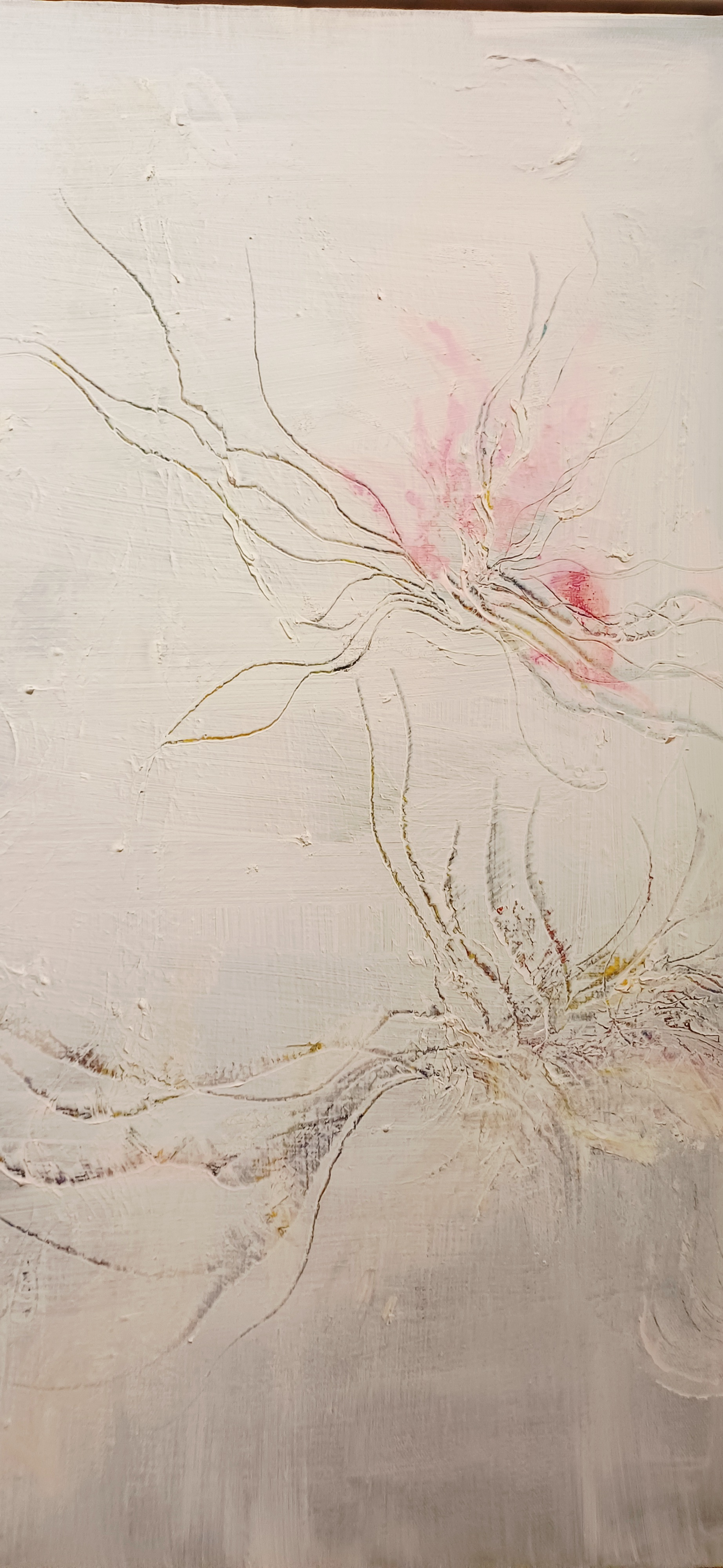 We need space in order to breathe. Not just physical breathing but breathing space to perceive all that is around us. This space is essential for our well-being. I found in my works I became more interested in “the background space” and the importance of that space. This could also be a metaphor for our own lives, how without that space between things are lives can become chaotic and tangled and lacking clarity.