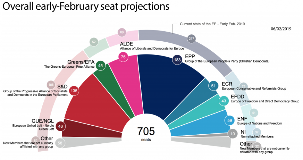 The European People’s Party (EPP), the Nationalist Party’s group, will also suffer a loss, obtaining 25.96% of the votes, constituting 183 seats, a decrease of 34 seats over the current 217.